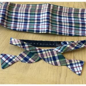VTG Plaid Bowtie Cummerbund Green blue Yellow Preppy 80s Prom Meunch