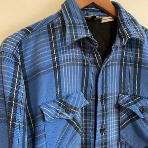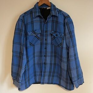 VTG Plaid Shacket XL Blue Winter Run Pockets Dad Oversized Fall Button Down Barn