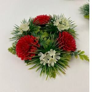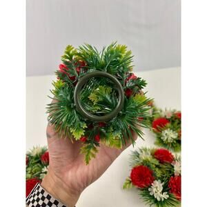 VTG Plastic Candle Rings Christmas Decor Red White Floral Holiday Lot of 6