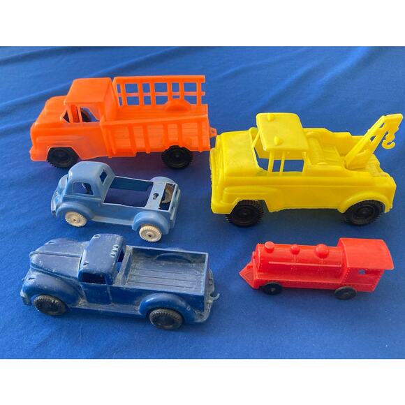 VTG Plastic Toy Vehicles Trucks Train Ideal and Unmarked