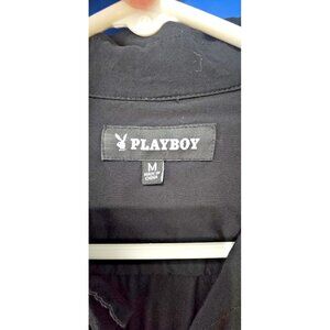 VTG Playboy Club Shirt M | Black Rayon Button-Down Bunny Logo 70s Style