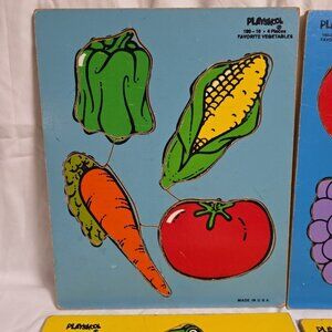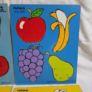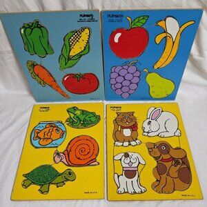 VTG Playskool Wooden Puzzles Lot Of 4 Pets Water Pals Fruit Veg USA Made Rare