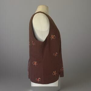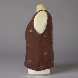 Vintage Plaza South Petite Top – Size 16P – Chocolate Brown Sleeveless Crop – Dancing Monkey Embroidery
