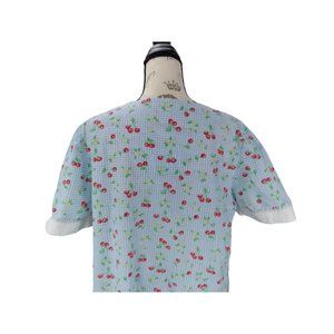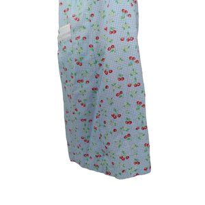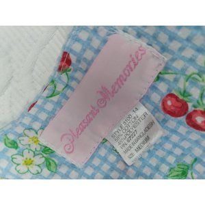 Vintage retro style Pleasant Memories brand Floral cherry & blue gingham pattern v neckline short sleeve Snap button size medium night dress. Measures approximately 21.5" across and 39" down. Pre owned good condition. For more details, please study all pictures.