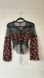 Chic sheer blouse with floral design. Black overlay with pink accents. Button-up front