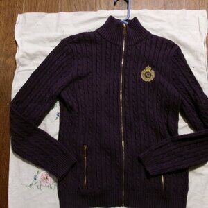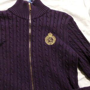 VTG Plum CABLE KNIT ZIP RALPH LAUREN GOLD ZIPPER GOLD CREST LOGO XL