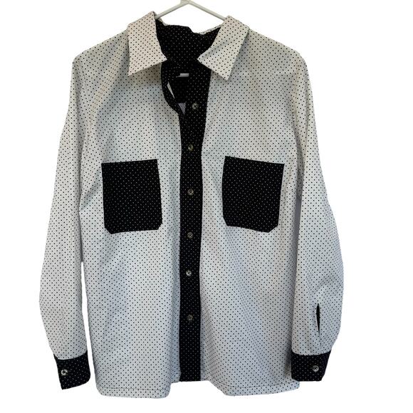 VTG Polka Dot Colorblock Button Up Shirt Womens SZ M/L Western Cowgirl Contrast