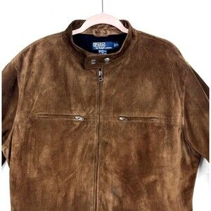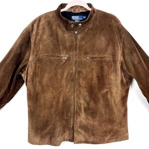 VTG Polo By Ralph Lauren Men’s Suede Leather Jacket SZ XL Brown Distressed Retro