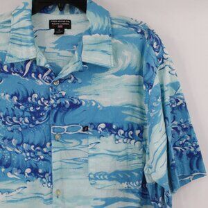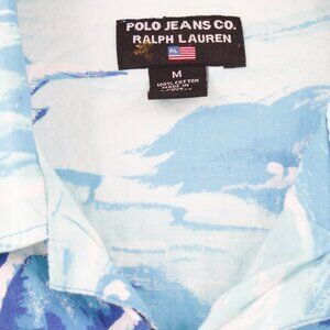 Polo Jeans Co. Ralph Lauren Camp Shirt Men's Medium Cotton Waves Print Button Up