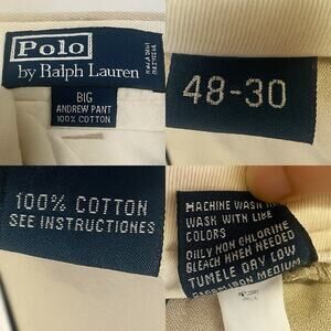 Vintage Polo Ralph Lauren pleated chinos with cuffed hems in a classic khaki cotton, size 48x30 big & tall – perfect 90s/Y2K preppy style. Vintage Pre-owned- This item is in good vintage condition --minor wear consistent with age. 2 small discolored spots on below back pocket. No rips, no tears, no stains. Refer to images for condition. Due to light and screen difference, the color may be slightly different from the picture.