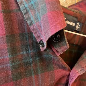 Vintage Polo Ralph Lauren Blue Label Blake Button Down Shirt Men Large Christmas Purple & Green Plaid Tartan Cotton Pony Logo