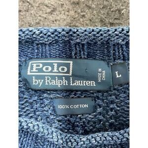 VTG Polo Ralph Lauren Cotton Knot Knit Blue Nautical Sweater Rolled Neck L