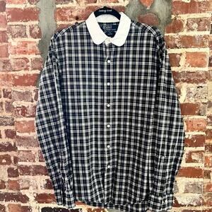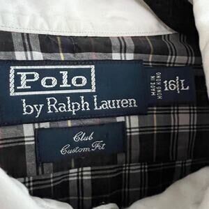 VTG Polo Ralph Lauren Custom Fit Club Collar Tartan Plaid Shirt 16 L 22x28