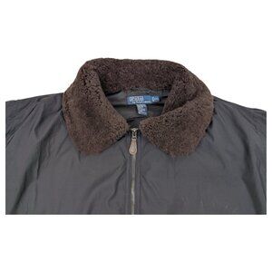 VTG Polo Ralph Lauren Down Flight Bomber Jacket Lamb Fur Collar 2XL Rare *READ