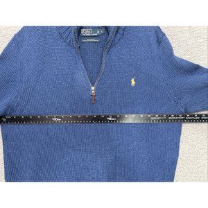 VTG Polo Ralph Lauren French-Rib Half-Zip Pullover Sweater Blue Sz Mens Lg. Item is pre-owned and pre- loved In excellent and good condition no holes or stains from pet free smoke free home. I have provided pictures of measurements to compare with your items you have at home for that perfect fit.