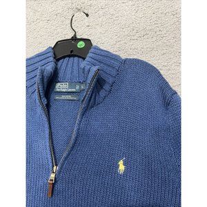 VTG Polo Ralph Lauren French-Rib Half-Zip Pullover Sweater Blue Sz Mens Lg