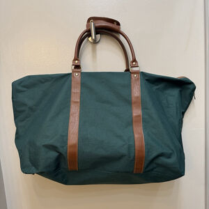 VTG Polo Ralph Lauren Green Canvas Brown Leather Travel Overnight Duffle Bag