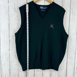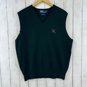 VTG Polo Ralph Lauren Green Golf Crest V-neck Lambswool Sweater Vest Size XL