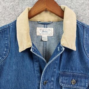 VTG Polo Ralph Lauren Jacket Mens Sz M Denim Chore Dungarees Corduroy Collar 90s