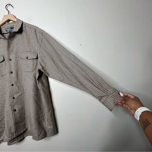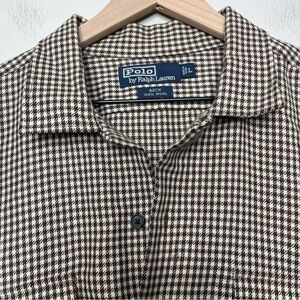 VTG Polo Ralph Lauren Men Beck Shirt Large 100% Wool Houndstooth Brown Pockets