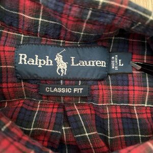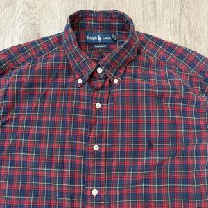 VTG Polo Ralph Lauren Men’s Button Up L Plaid Red Green Navy Shirt CLASSIC FIT