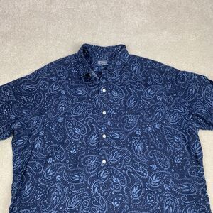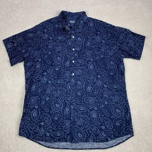 VTG Polo Ralph Lauren Mens Large Paisley 1/2 Button Cambridge 100% Linen Shirt