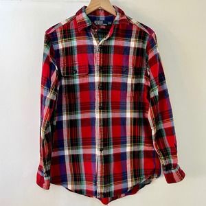 VTG Polo Ralph Lauren Men's M Red Plaid Heavy Flannel Shirt Work Skiing Hiking