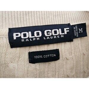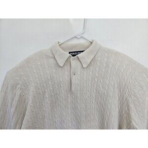 VTG Polo Ralph Lauren Mens Medium Cable Knit Collared Golf Sweater Off White