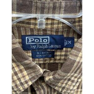 VTG Polo Ralph Lauren Mens Seersucker G.I. Shirt Brown Plaid Button Front Medium