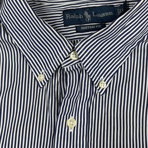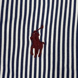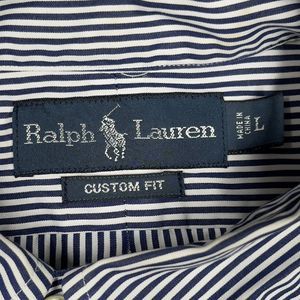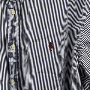 VTG Polo Ralph Lauren Mens Shirt Large Blue White Striped Custom Fit Brown Pony