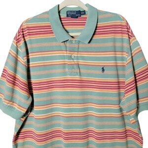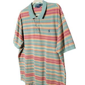 VTG Polo Ralph Lauren Mens Southwestern Aztec Zarape Striped Pique Shirt XXL