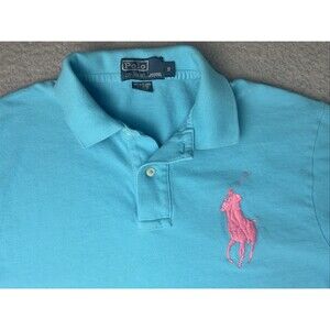 VTG Polo Ralph Lauren Polo Shirt Mens Small Light Blue Pink Big Pony South Beach