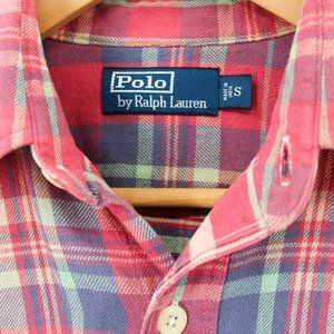 VTG Polo Ralph Lauren Shirt Cotton Flannel Plaid Button Up Long Slv Men's Small