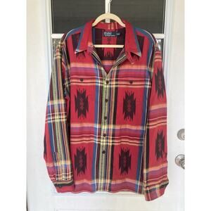 VTG Polo Ralph Lauren Shirt Mens XXL Chin Strap Aztec Southwestern Beacon Serape