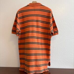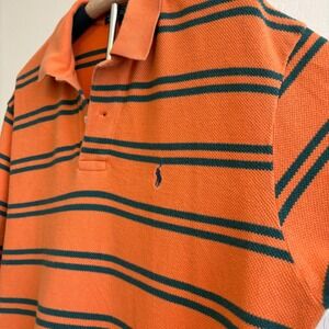 Celebrate summer in timeless style with this vintage Polo by Ralph Lauren men's polo shirt, size large. The bold orange and green stripes, embroidered pony logo, and collared neckline make it a standout choice for Father's Day, BBQs, or casual weekend outings.