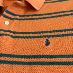 VTG Polo Ralph Lauren Striped Polo Shirt Mens L Orange Green Soft Mesh Cotton