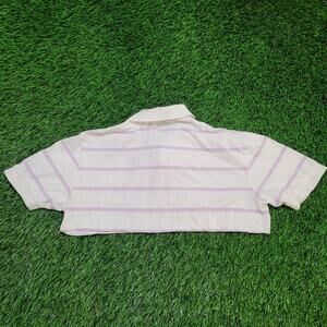VTG Polo Ralph Lauren Super Cropped Boxy Polo Shirt Womens M/L (Tagged M) Drop Shoulder Wide Fit Micro Crop Very Cropped Pastel Lilac Purple White