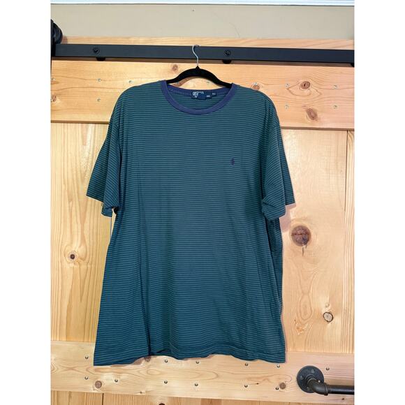 VTG Polo Ralph Lauren T Shirt Striped Green Blue Men’s XXL 100% Cotton