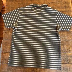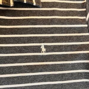 Crafted with the timeless elegance Polo Ralph Lauren is known for, this vintage classic gray and white striped polo shirt is a versatile addition to any wardrobe.
