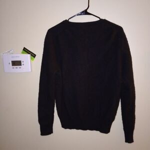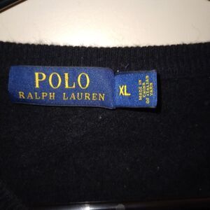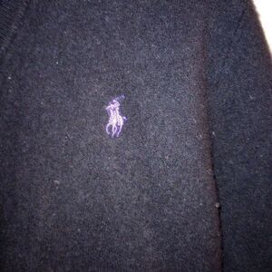 Polo Ralph Lauren 100% Merino Wool Sweater Black V-Neck Purple Pony.