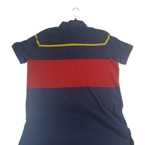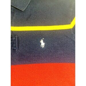 Elevate your style with this vintage Polo by Ralph Lauren color block rugby shirt. Made from 100% cotton, this shirt features short sleeves, a collared neckline, and a custom fit for maximum comfort. The shirt is perfect for any occasion and is available in size L. The colorful theme adds to the shirt's appeal, making it a must-have for any fashion-conscious man. This shirt is perfect for rugby enthusiasts and is made in China. Add this classic piece to your wardrobe today!
