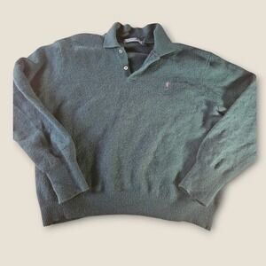 VTG Polo by Ralph Lauren XXL Green Wool Polo Shirt Sweater Pink Pony Logo