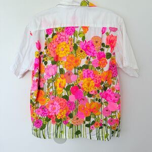 Step into vintage island style with this 70s Pomare Tahiti Hawaiian shirt, crafted from soft cotton with a bold floral print, short sleeves, and classic button front. White base with tiny lapel stain (see photo). A breezy retro staple perfect for beach days or summer hangs.