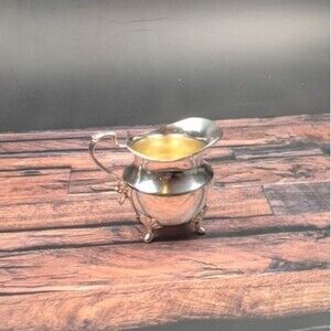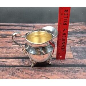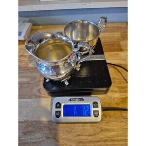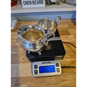 Elegant vintage Poole Silver Company creamer and open sugar bowl set, style #2500. Crafted in classic Old English style with ornate feet and graceful curves—perfect for serving or display.
