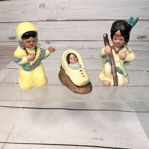 VTG Porcelain American Nativity Set Teepee, Holy Family and Animals Hand Painted