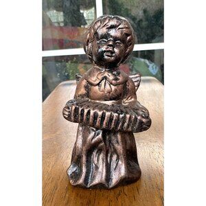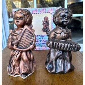 VTG Porcelain Angel Figurines Set of 2 Antique Look Bronze Finish Midwestern Hom