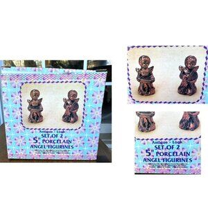 VTG Porcelain Angel Figurines Set of 2 Antique Look Bronze Finish Midwestern Home Products Box READ
