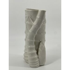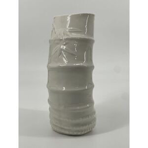 VTG Porcelain Asian Vase Vessel Bamboo Design White Blanc de Chine Glossy 10in