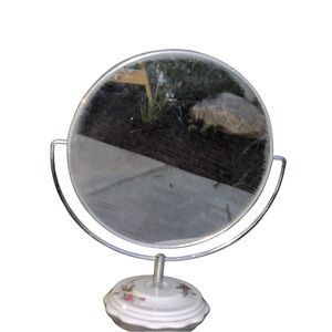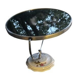 VTG Porcelain Base Double Sided Magnifying Vanity Make Up Mirror Roses Floral