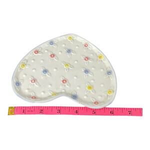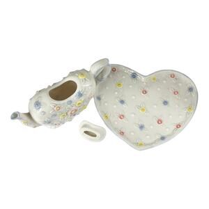 VTG Porcelain Heart TEAPOT & PLATE Tea Set 6.5" Ceramic Flowers White Blue Pink